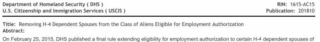 另外,美国移民局计划修改非移民工作签证H1B的相关规定(包括取消H1B配偶工作许可),目前已开始征求公众意见。